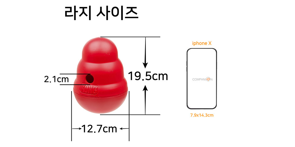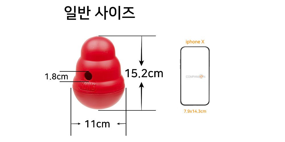 누구나 알고 있는 장난감이지만, 사용 방법이 어려워 포기했던 콩 장난감. 반려동물 라이프스타일 문화를 선도하는 기업 컴패니언에 의하여 다시 태어나다. 중고 신인인 [오리지널 강아지 장난감] 오뚝이 KONG 워블러 는 미국에서 반려동물을 잘 알고 사랑하는 전문가들에 의하여 만들어진 안전한 재질의 장난감이지만, 더 나아가 반려견의 행동 문제나 스트레스를 해소할 수 있는 기능성 장난감 이여서, 최근 < 세상의 나쁜개는 없다 : 김빵꾸사원이 왜 그럴까 > 소개 되었으며, 많은 반려인들에게 재조명되고 있는 상품입니다.